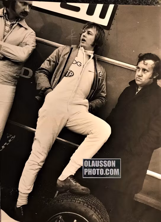 Genombrottsåret 1971 var omvälvande för Ronnie. Brorsan Tommy åkte till Hollands GP på Zandvoort, där han träffade stallbossen hos March, Alan Rees. Notera att Ronnie fortfarande är sponsrad av Smog - Vick kom senare. Format 24 x 30 cm.