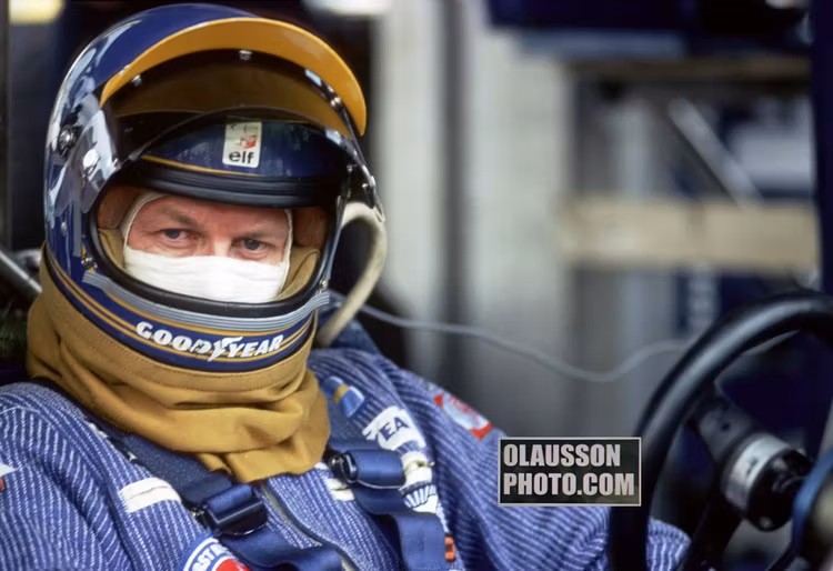 Tävlandet tärde på Ronnie. Nu hade han plötsligt skrynkor. Men ambitionen var fortfarande att bli världsmästare i Formel 1. Så blev det ju aldrig - två andraplatser i VM räckte gott. Format 20 x 30 cm. Olaussonphoto.