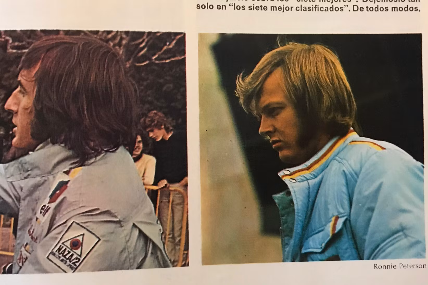 I Spaniens GP på Jarama 1972 rattade Ronnie för March - en 721. Innehållsrikt material. Tjock tidning, spanska. dekal i format 8 x 14 cm.