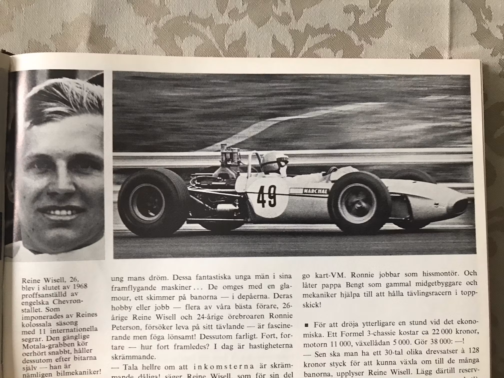 Ett mycket spännande år i svensk motorhistoria. Kampen mellan Ronnie Peterson och Reine Wisell var stenhård. Mycket bilder och bra text.