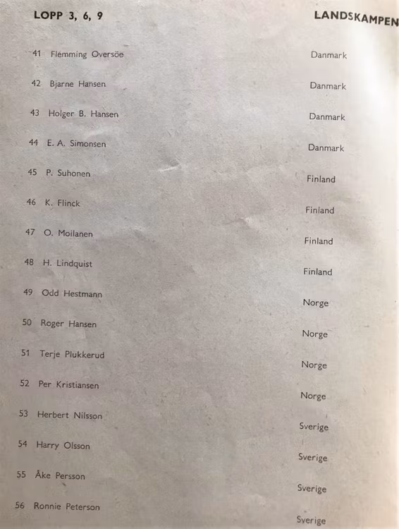 Programmet är från Racing Ring i Älmhult den 30 augusti 1964. Tävlingen ingick i det Nordiska Mästerskapet. Ronnie körde tre heat och vann samtliga tävlingar.