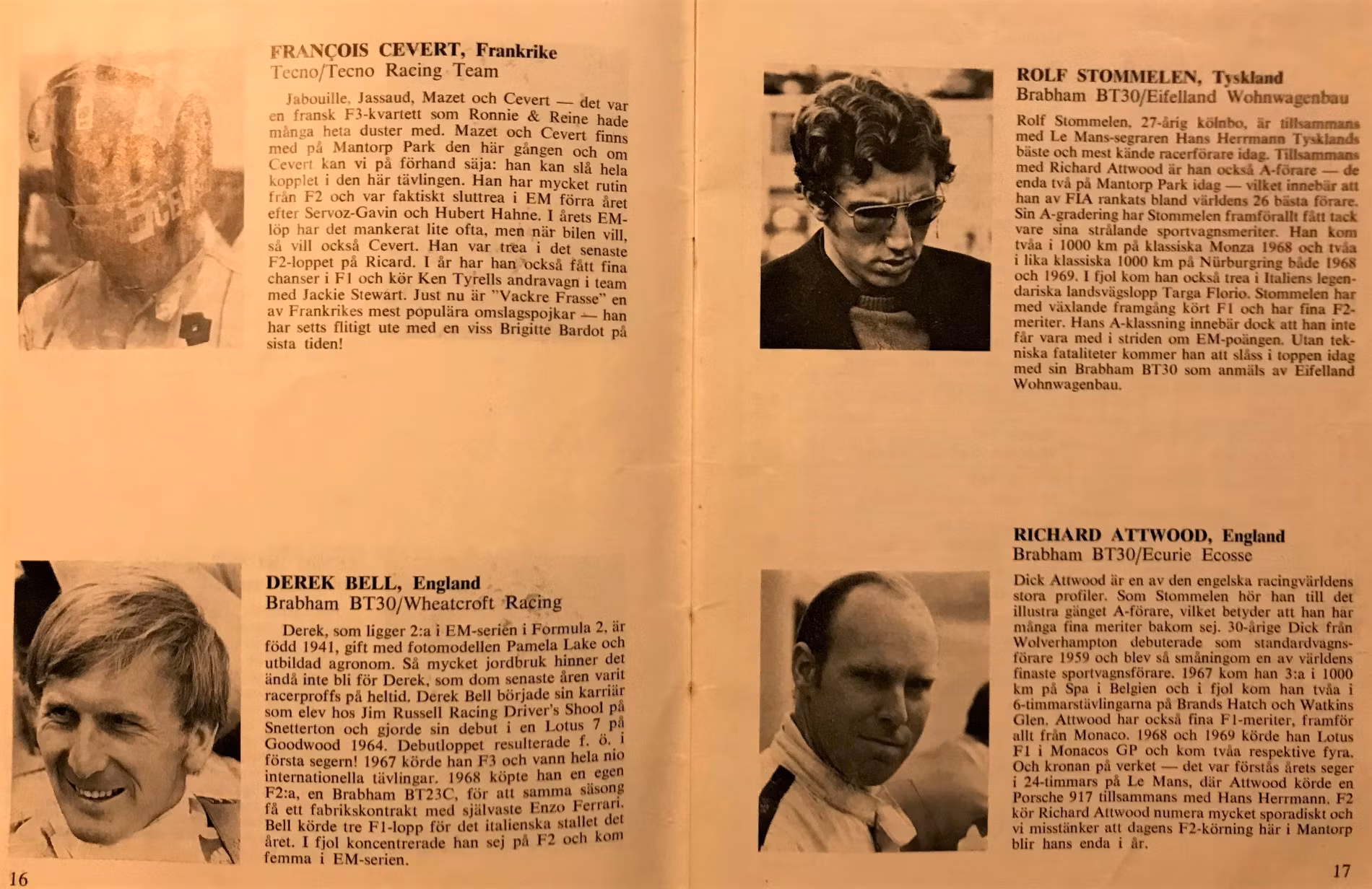 i Sverige. Detta program omfattar 42 sidor med anekdoter och info om epokens F2-racing. Format 15 x 24 cm. OK skick.