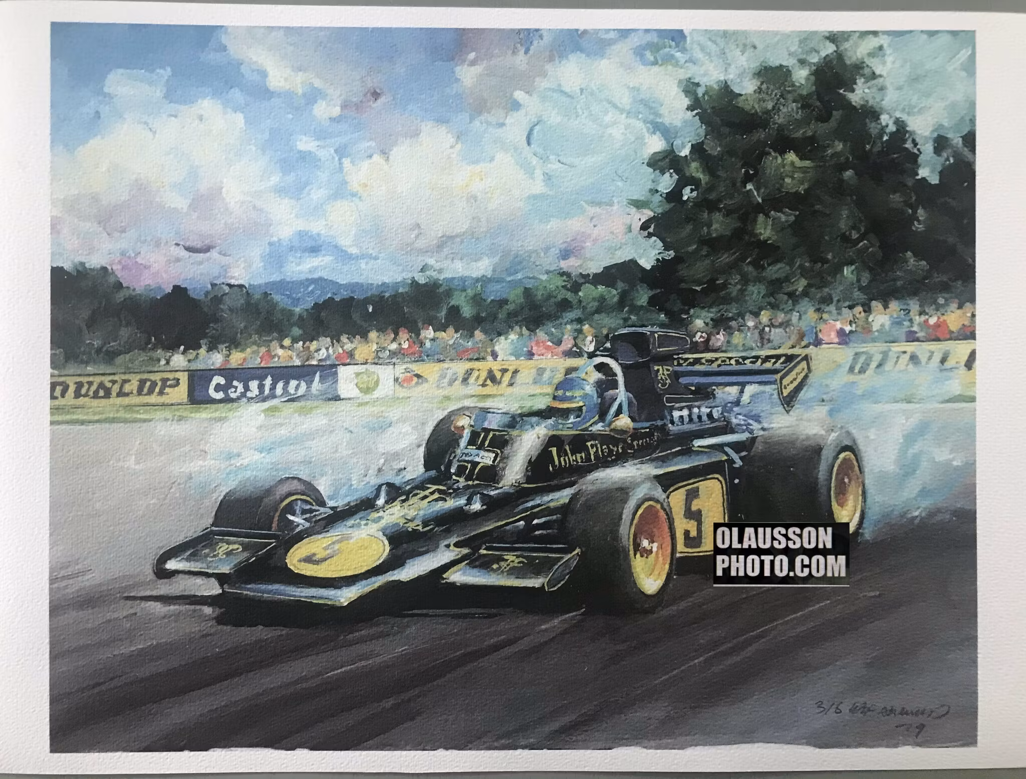 Ronnie Peterson, Lotus 72 fr '75, signerad litografi 3/6, Leif Ahnlund, format 28x36 cm