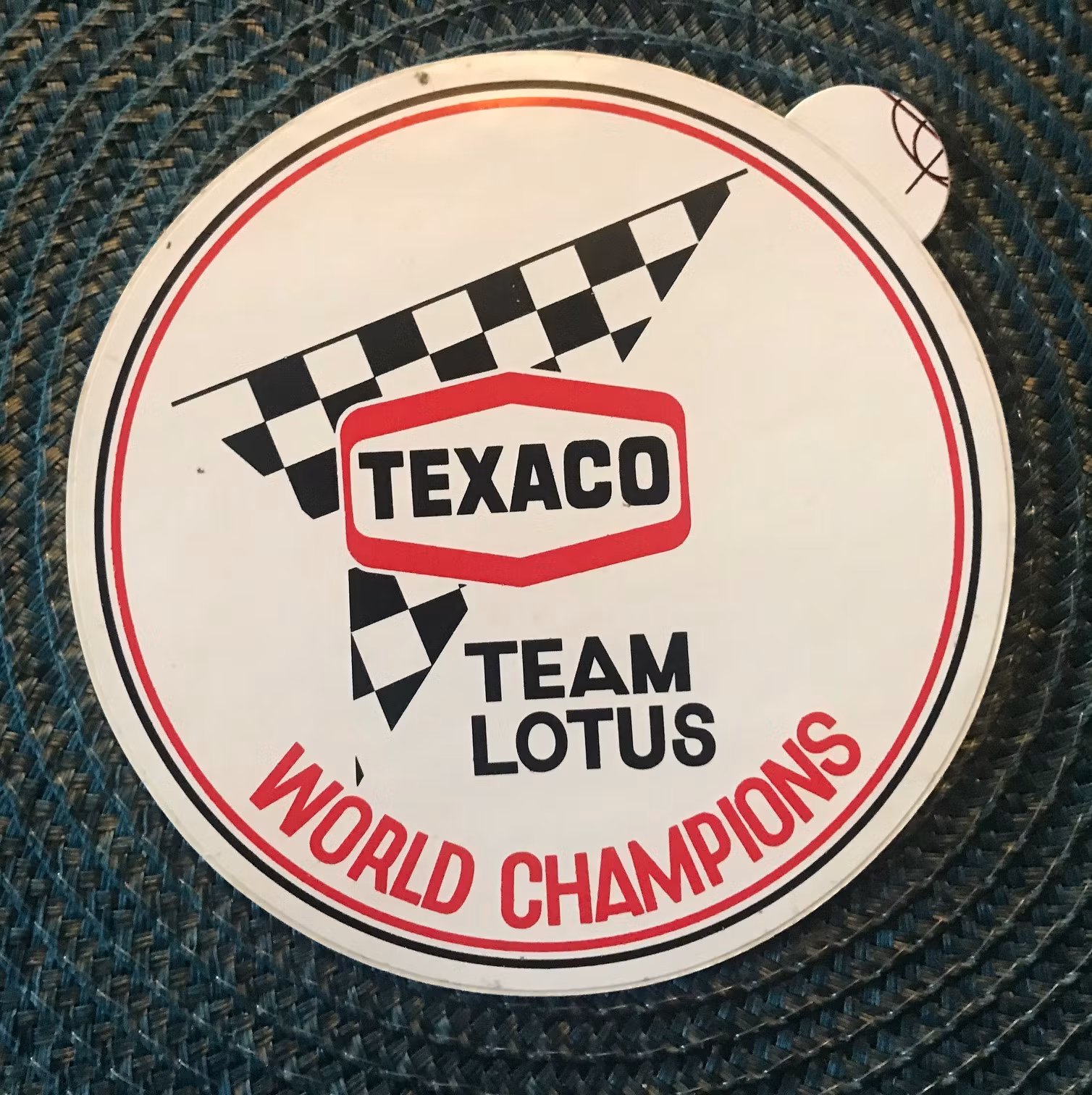 TEXACO - TEAM LOTUS - world champions dekal - 12 cm i diameter 175 kr Denna dekal är exklusiv och numera svår att uppbringa. Diameter 12 cm I lager. Lägg i korgen Lagersaldo: 1 Artikelnummer: 266 Dela Information Denna dekal är exklusiv och numera svår att uppbringa. Diameter 12 cm