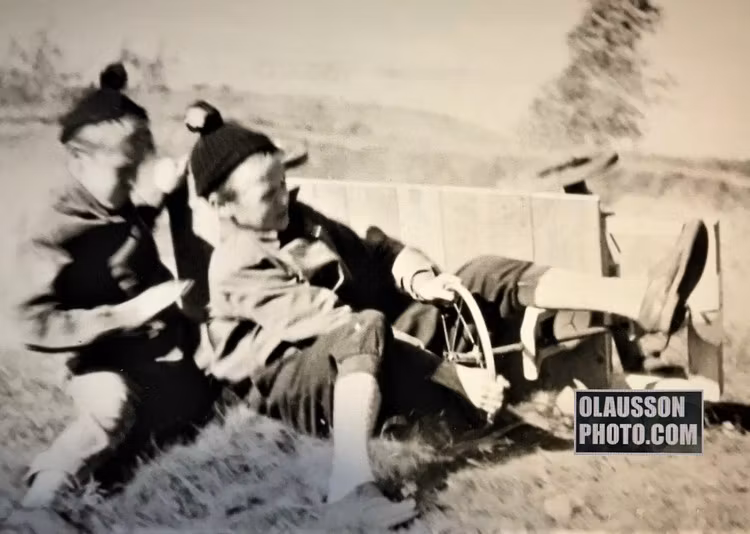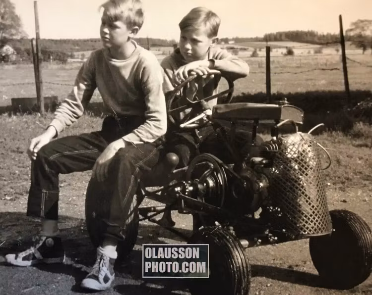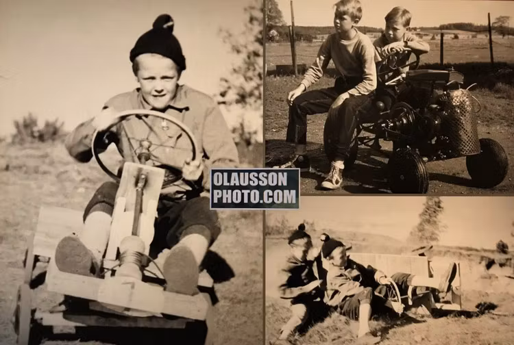 I samband med jubileumsutställningen på Örebro Läns Museum visades viktiga foto av Ronnie Peterson tillsammans med en del andra föremål. De här bilderna kommer från Ronnies egna fotoalbum, då örebrosyskonen Ronnie och Tommie en gjorde sin debut på fyra hjul. Det aktuella fotot visades på denna utställning, en raritet - fotokompositionen bara i ett enda exemplar från Örebro Läns Museum. Drygt 20 000 besökare från hela Europa kom för att se historien, karriären, fotografierna, bilarna och hans gamla gokart. Format 32 x 47 cm.